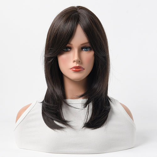 Estelle Full Wig for Heat Resistant Synthetic Wig Natural Long Straight Wig With Bangs Lady Fiber Wig Black Brown