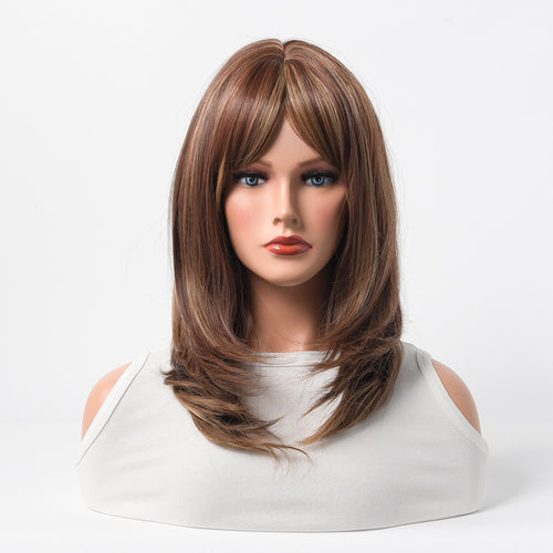 Estelle Full Wig for Heat Resistant Synthetic Wig Natural Long Straight Wig With Bangs Lady Fiber Wig Highlight Brown