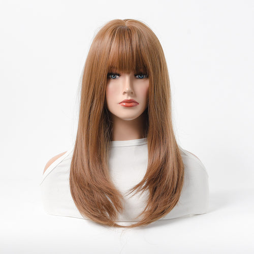 Estelle Full Wig for Heat Resistant Synthetic Wig Natural Long Straight Wig With Bangs Lady Fiber Wig Light Brown 02