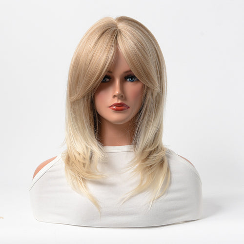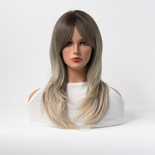 Estelle Full Wig for Heat Resistant Synthetic Wig Natural Long Straight Wig With Bangs Lady Fiber Wig Gradient Blonde