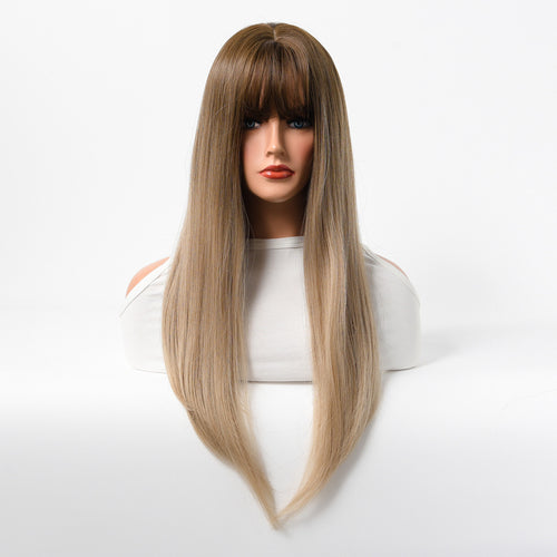 Estelle Long Straight Hair Female Milk Blonde Wigs Full Head Covers Blonde Brown