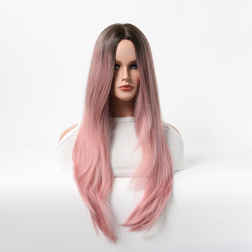 Estelle Long Straight Hair Female Milk Blonde Wigs Full Head Covers Dark Pink