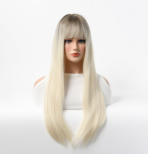 Estelle Long Straight Hair Female Milk Blonde Wigs Full Head Covers Gradient Blonde