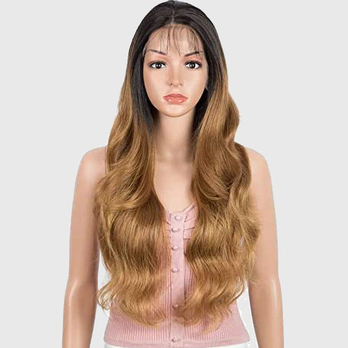 Estelle Long Wavy Lace Front with 13"x2.5" Simulated Scalp Wig 24'' Body Wavy Synthetic Wigs (Ombre Honey Color) دانتيل أمامي طويل مموج من Estelle مع شعر مستعار مقلد لفروة الرأس مقاس 13 × 2.5 بوصة 24 بوصة شعر مستعار صناعي مموج للجسم (لون عسلي متدرج اللون)
