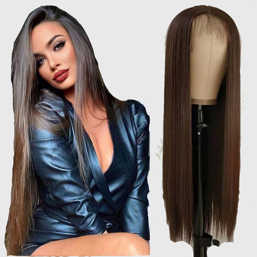 Estelle Chestnut Brown Long Straight Lace Front Wigs Hair, Glue less Natural Heat Resistant Synthetic Hair for Black Women 100% Stylish Wigs (#6 Brown)