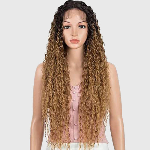 Estelle Long Curly Lace Front Wigs with 13"x2.5" Simulated Scalp Wig (Curly, Ombre Honey Color) شعر مستعار أمامي طويل مجعد من Estelle مع شعر مستعار مقلد لفروة الرأس مقاس 13 × 2.5 بوصة (مجعد ، لون عسلي متدرج)