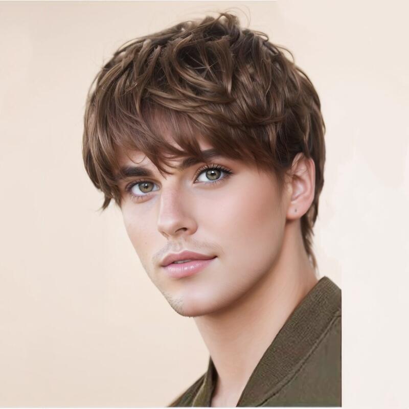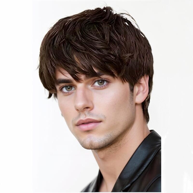 Men's Short Wigs - Heat-Resistant Matte Fiber Wigs for Daily Use, Natural Look with Voluminous Curly Styles (Short Wavy, Side/Straight Bangs)